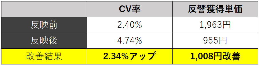 以上の施策を実行した結果、施策反映前よりCV率を2倍近く上昇させることができました。